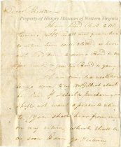 Letter from John Watts to his brother William Watts, in Botetourt County, Virginia, saying that he hired out a slave, Bob, to Mr. Carnes, and is negotiating a land purchase with Mr. Gilliat, thinking Burton's land unavailable; also gives news of William's son Edward, at school, and sends compliments from his wife, Elizabeth (Roberts) Watts. Transcription by English Showalter accompanies the document.